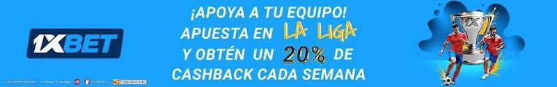 ¿Te interesan las apuestas deportivas online sobre La Liga? Con estas apuestas en la plataforma 1xBet obtendrás un 20% de cashback semanal, hasta un máximo de 100 EUR. Para participar en la promoción, debes: