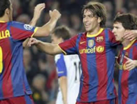 2. Barcelona: Pinto; Alves, Piqué, Puyol, Abidal; Mascherano, Busquets, Iniesta (Keita, min.89) , Maxwell (Pedro, min.72) ; Villa (Xavi, min.72) y Messi.