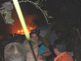 Fotografías publicadas en la página web oficial de Cubadebate muestran los restos del avión ardiendo en medio de la noche.