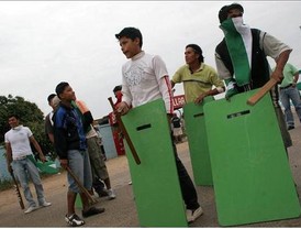 La protesta se había llevado a cabo de forma pacífica hasta que el contingente policial cargó con bombas lacrimógenas contra los estudiantes, en su mayoría de facultades de periodismo, quienes respondieron arrojando piedras y botellas.