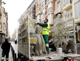 El Ayuntamiento ya ha comenzado a colocar la iluminación que, con recortes por la crisis, adornará las próximas fiestas el centro de la ciudad, barrios y diputaciones