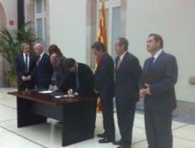 El acuerdo se ha firmado en uno de las salas del Parlament los presidentes de los dos grupos parlamentarios: Oriol Pujol (CiU) y Joaquim Nadal (PSC).