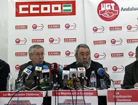 Tras la asamblea de delegados, ambos dirigentes, acompañados por el secretario general de CCOO-A, Francisco Carbonero, y el secretario general de UGT-A, Manuel Pastrana, han participado en una manifestación desde el palacio de deportes de San Pablo hasta la sede de la Tesorería General de la Seguridad Social, junto a la estación de Santa Justa de Sevilla.