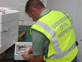 Agentes de la Guardia Civil del Servicio de Protección de la Naturaleza (Seprona) de la Comandancia de Sevilla e inspectores pesqueros de la Consejería de Agricultura y Pesca de la Junta de Andalucía se han incautado 651 kilos de pescado de talla antirreglamentaria en Mercasevilla y en una furgoneta procedente de Huelva que circulaba por la A-49, formulando por todo ello tres denuncias a la Ley 3/2001 de Pesca Marítima del Estado.