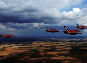acróbatas del equipo `Red Arrows Acrobatic Team´ de las Fuerzas Armadas