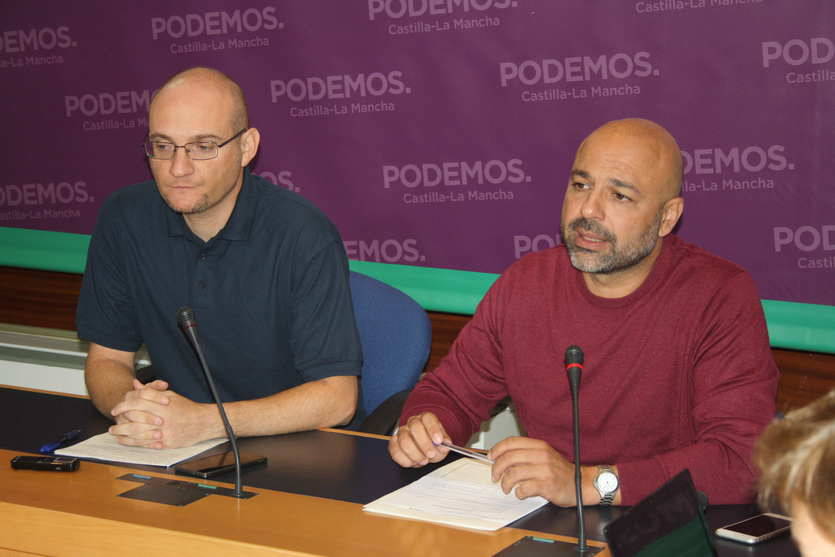 Javier Martín, acompañado por el secretario general de Podemos en Castilla-La Mancha, José García Molina, ha presentado este martes la denuncia interpuesta ante el juez Eloy Velasco para que investigue las "posibles irregularidades" derivadas de las adjudicaciones, que han supuesto un "gasto enorme a un Ayuntamiento endeudado y acogido al fondo de donación de entidades locales".