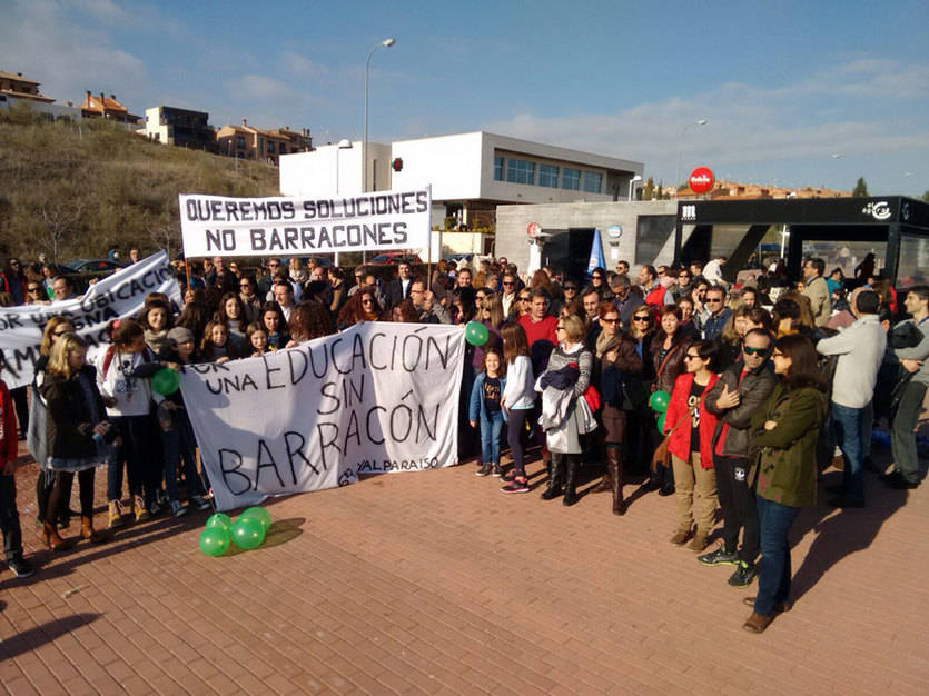 Padres y alumnos del Colegio Valparaíso de Toledo piden salir de la "precariedad" en la que reciben las clases los alumnos de 6ºB del centro y por eso unas 400 personas se concentraban este comingo pidiendo su reubicación en las instalaciones del centro.