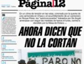 A pesar que en la jornada de ayer Página nos contaba que el agro había decidido terminar con el paro, este domingo titula “Ahora dicen que no la cortan” explicando que “En un clima de tensión en las rutas, coronado por la quema de una camioneta en Chaco y el acuchillamiento de un camionero en Roque Pérez, los “autoconvocados” liderados por De Angeli amenazan con seguir las medidas de fuerza el lunes, contra lo decidido por la Mesa de Enlace”.