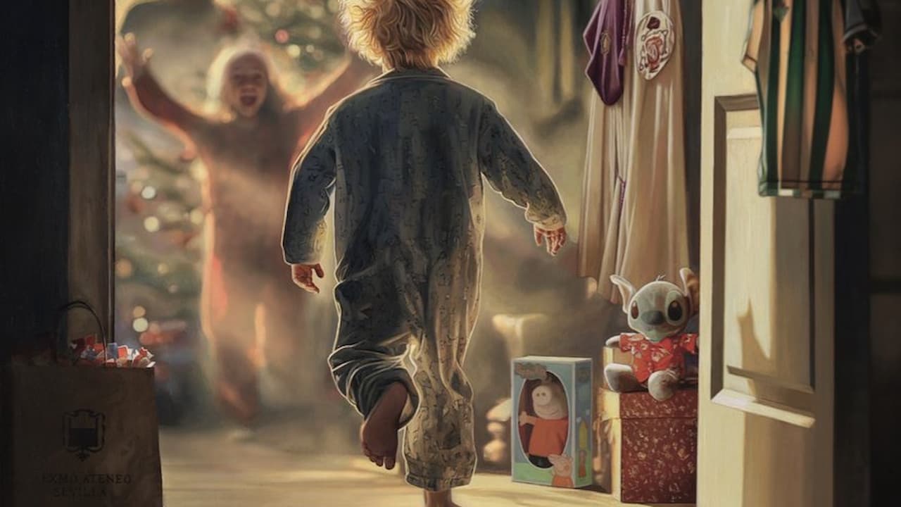 La obra pintada por Fernando Vaquero lleva por título 'La ilusión' y está realizada en óleo sobre lienzo. En su presentación, el autor la describió como una historia: "Esos caramelos son el puente entre la fantasía de la noche y la ternura del amanecer. Ha amanecido. La luz dorada del sol se cuela por la ventana y acaricia el salón. El árbol de Navidad despierta y, con él, todo parece brillar", comentó el artista, en referencia a una bolsa de papel con el escudo del Ateneo de Sevilla que reposa junto al marco de la puerta.
