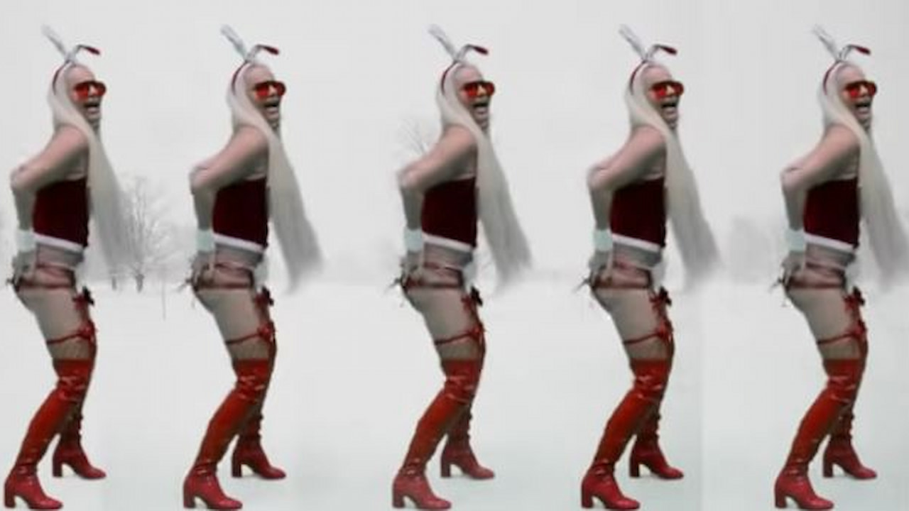 Como ya es habitual, ha usado el croma hasta que ésta echa humo, para moverse por distintos escenarios invernales por donde, además de ella misma, aparecen personajes navideños tradicionales como los Reyes Magos borrachos, Papá Noel sin pantalones, seres antropomorfos con cabeza de caballo y hombres a los que no querría uno encontrarse de noche en un parque solitario. Todos bailando felices.
